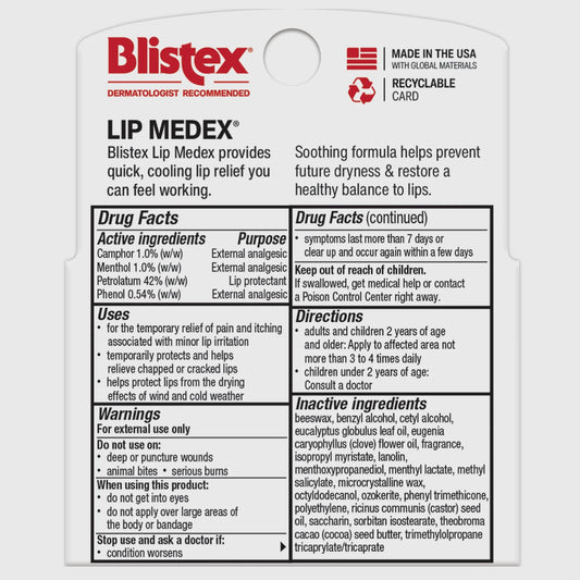 Blistex Lip Medex Stick - Medicated Relief with Soothing Relief - 3 Count, 0.15oz Ea.