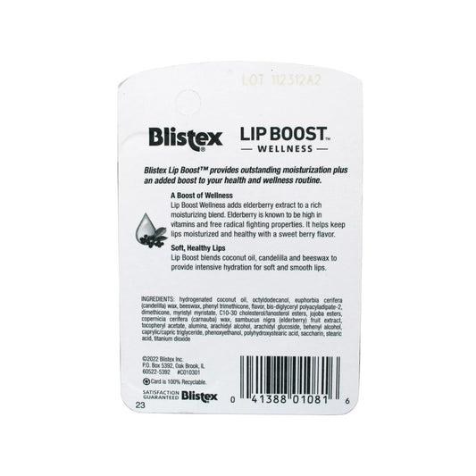 Blistex Lip Boost Wellness, Intensive Hydration from Coconut Oil & Beeswax, Elderberry Moisturizer 0.13 oz